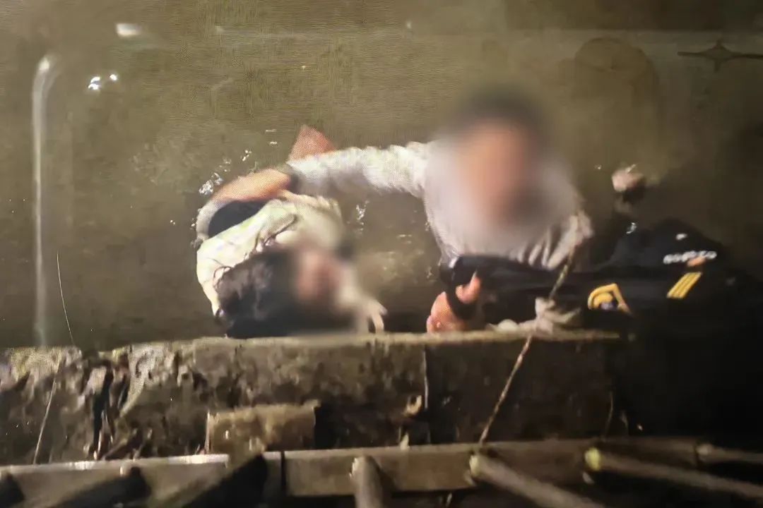 由于岸边有栏杆,且与水面落差较大,无法直接将落水者拉上岸。此时天气寒冷,民警与一同营救的人员没有丝毫犹豫,迅速脱下身上的衣物,拧成“一股绳”,用衣服当作临时绳索,合力将落水者拉上岸。